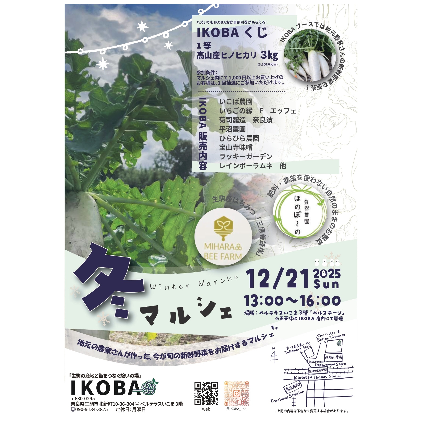 2025年12月に生駒市内で開催されるマーケットをお知らせします。詳細は各マーケットのSNS等をご覧ください。