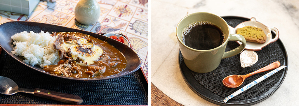 すえひろ名物のカレーとコーヒー。できるだけレシピは変えず、長年の味を守っています。